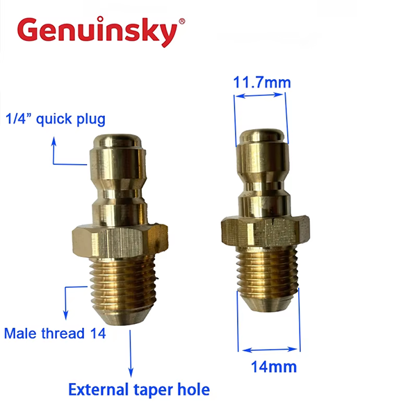 Os acessórios de plugue de liberação rápida de bronze de 1/4 de polegada podem ser adaptados a várias marcas de lavadoras de alta pressão, que são profissionais, convenientes e eficientes. Profissionais e usuários domésticos podem ter uma boa experiência. A Ningbo Genuinsky Company é uma empresa especializada na produção de acessórios de limpeza. A empresa integra fabricação, desenvolvimento e vendas, com atencioso serviço pós-venda, excelente qualidade, preço preferencial e tenha certeza de usar.