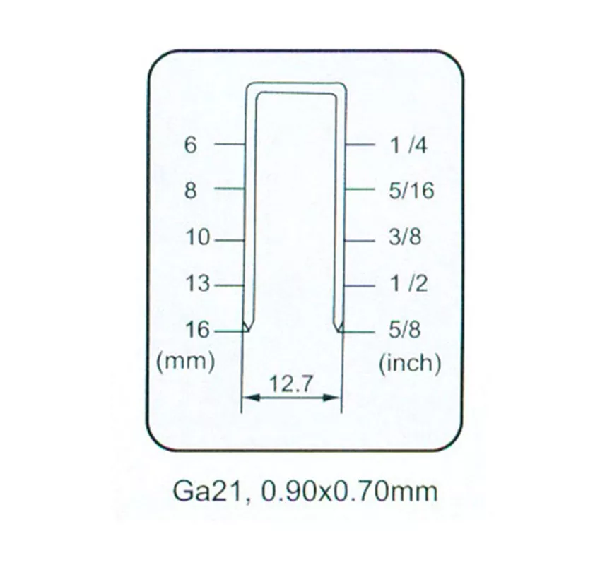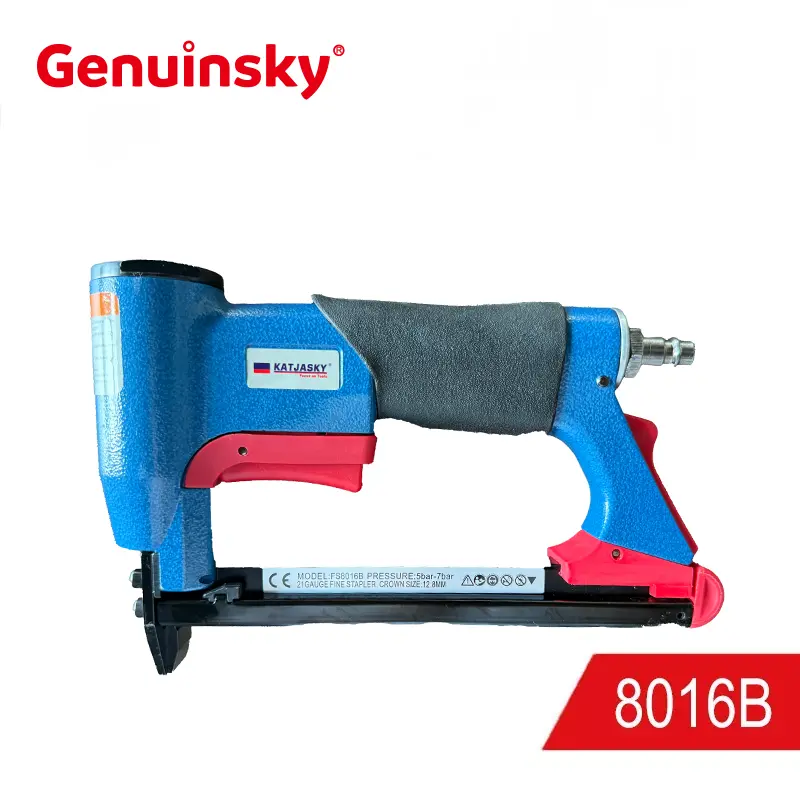 Os modelos de produtos incluem principalmente o grampeador da coroa fino de 8016b, o grampeador de coroa fino 8016C Air, 8016ln (nariz comprido) grampeador de coroa fino da coroa, todos os quais são pistolas de unhas de ar pesadas clássicas. UNIDADE ADEQUADO GA21, 0,90X0,70 mm, distância do ombro 12,7 mm, altura da unha pode ser de 6 mm, 8 mm, 10 mm, 13 mm, 16 mm (1/4, 5/16, 3/8, 1/2, 5/8 polegada).