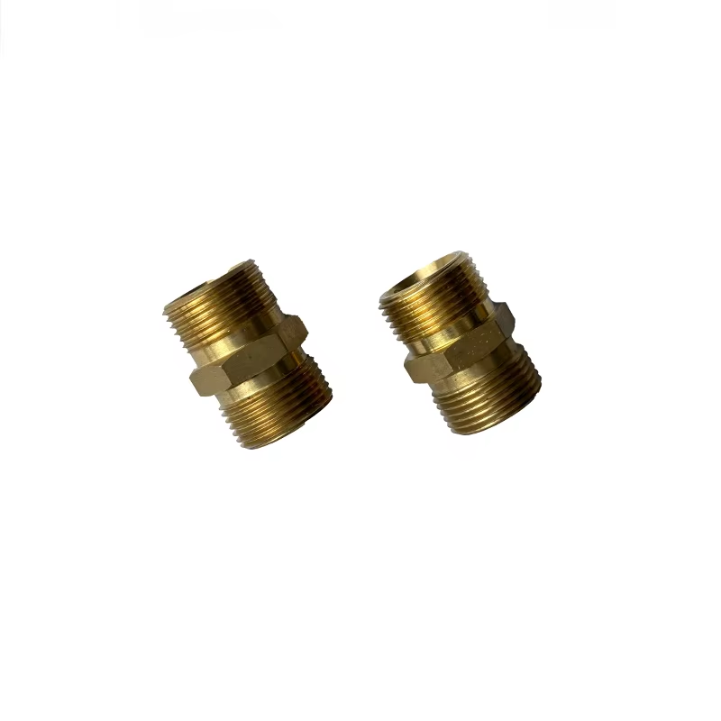 O design do tamanho do produto é preciso, o que pode combinar perfeitamente com o equipamento de limpeza de alta pressão correspondente. Uma das extremidades do produto é a rosca fêmea M22×1,5, com diâmetro de 22mm e núcleo dia.14mm. A outra extremidade é o núcleo dia.15mm. O tamanho da rosca externa do M22 é o tamanho padrão geral de muitos equipamentos de limpeza de alta pressão e pequenos sistemas hidráulicos no mercado. O produto pode ser compatível com esses equipamentos para obter uma conexão perfeita e uma adaptação precisa. Além disso, a abertura de diâmetro diferente do produto em si tem diâmetro de núcleo de 15 mm em uma extremidade e diâmetro de núcleo de 14 mm na outra extremidade, para que possa adaptar com flexibilidade alguns requisitos de conexão de diâmetro diferente e resolver o problema de difícil adaptação de tubulações de diâmetro diferente em operações de limpeza de alta pressão. O produto em si é feito de latão. O latão não só tem excelente resistência à corrosão, mas também pode resistir à corrosão causada pela água ou por alguns produtos de limpeza em um ambiente de trabalho complexo de longo prazo para evitar vazamentos de vedação causados pela corrosão. Ao mesmo tempo, o latão tem excelente dureza e resistência, por isso pode permanecer estável diante de impactos de alta pressão e não é fácil de quebrar e vazar. Finalmente, o latão também é fácil de processar, o que pode controlar estritamente o erro de precisão da rosca e abertura dentro de 0,02 mm, o que pode garantir a vedação durante a conexão.