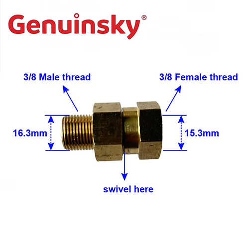 Uma extremidade deste adaptador de conector de ajuste giratório de latão é 3/8 fios masculinos, com um diâmetro de cerca de 16,3 mm; A outra extremidade é 3/8 feminina feminina, com um diâmetro de cerca de 15,3 mm, que é equipado com uma pistola de limpeza de alta pressão para trabalhar na operação de limpeza. O adaptador do conector de ajuste giratório de latão pode reduzir o enrolamento do oleoduto na operação de limpeza, tornar a operação mais flexível e melhorar a eficiência do trabalho.