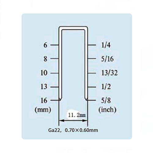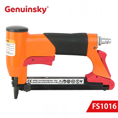 FS1016 Air Crown Flapleler são pistolas de unhas de ar pesadas clássicas. UNIDADE Adequado Ga22, 0,75x0,60 mm, distância do ombro 11,2 mm, altura da unha pode ser de 6 mm, 8 mm, 10 mm, 13 mm, 16 mm (1/4, 5/16, 3/8, 1/2, 5/8 polegada).