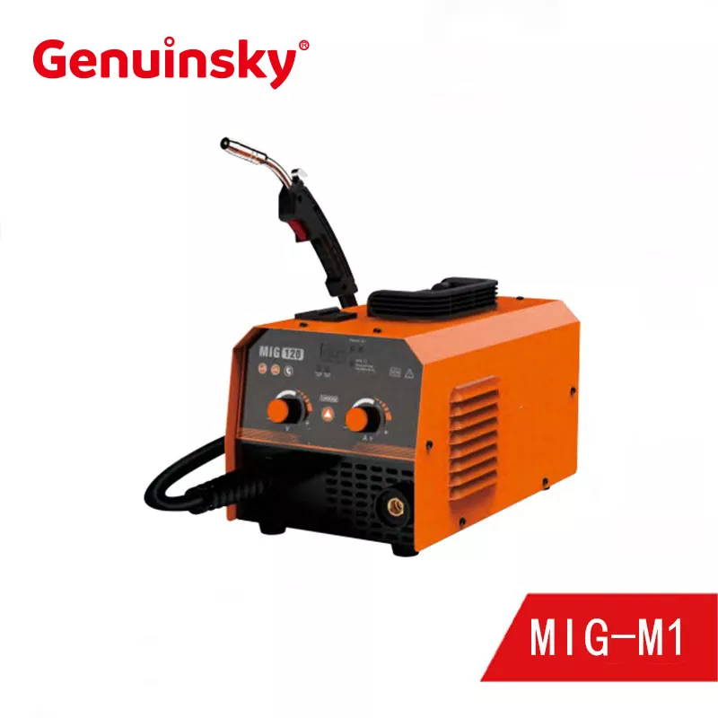 Máquina de soldagem MIG-M1 Inverter MIG. O MIG é curto para o gás de inércia de metal, que é uma função muito popular para um melhor efeito de soldagem. Também é conhecido como GMAW (soldagem a arco de metal a gás) ou FCAW (soldagem de arco de núcleo de núcleo). De acordo com materiais internos, os fios MIG podem ser distintos como tipo de aço, tipo de aço inoxidável e tipo de liga de alumínio, etc.