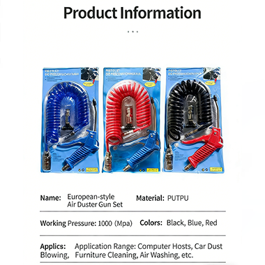 GenuinskyKit de pistola de ar pneumática estilo europeupode cobrir uma variedade de cenários de uso, seja trabalho de limpeza diário ou trabalho de manutenção industrial, desde remoção leve de poeira até cenários moderados de remoção de poeira.