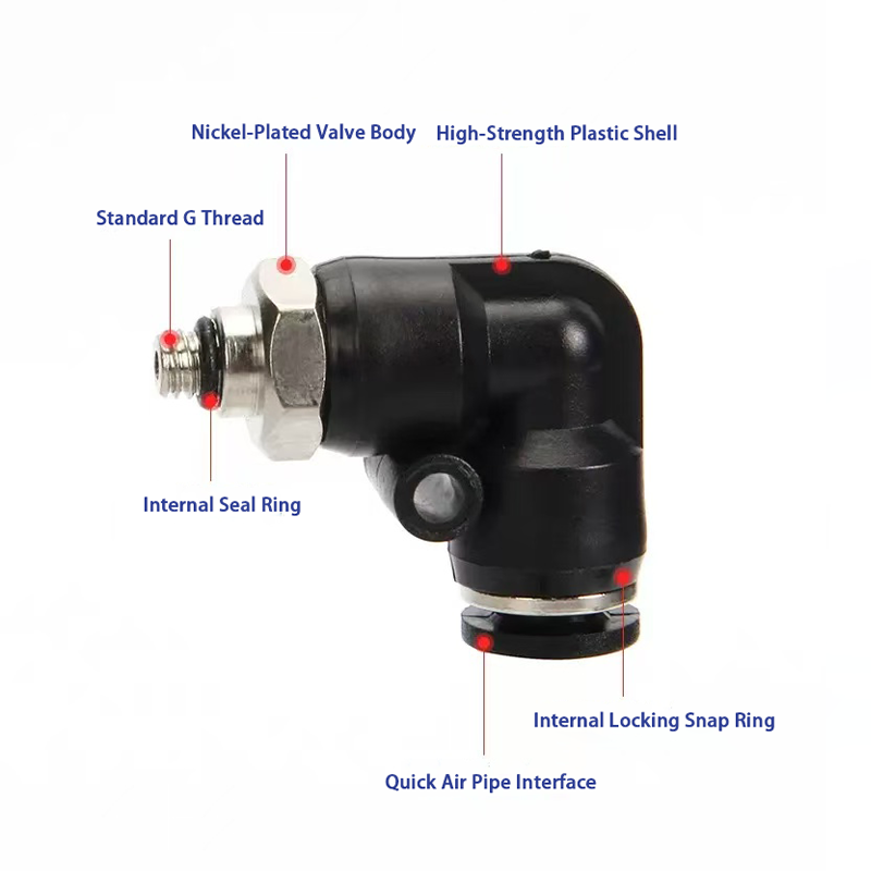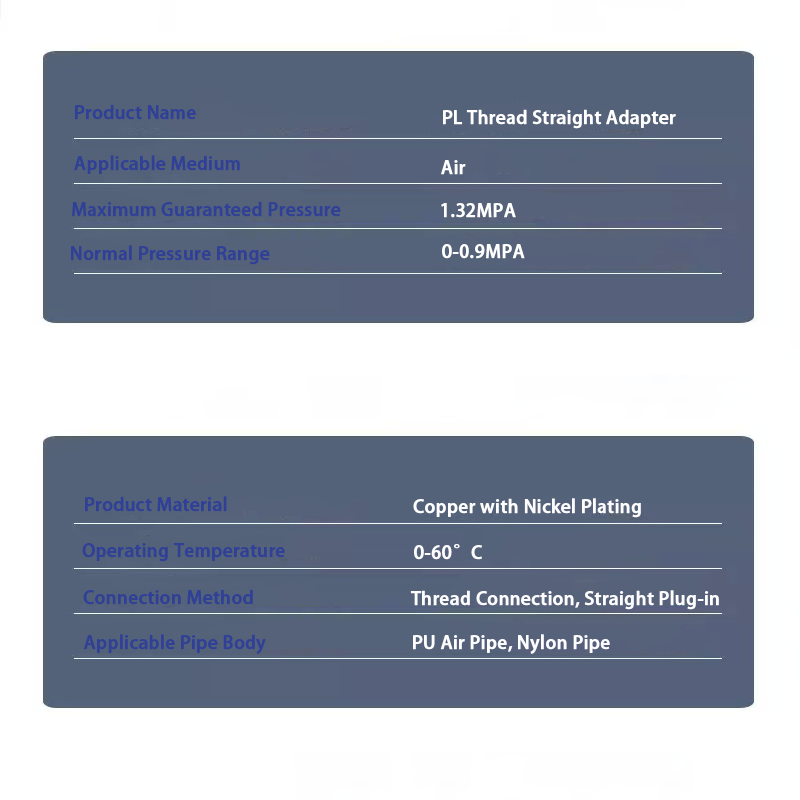 O adaptador reto de rosca PL e o tubo podem até girar 360° livremente após a instalação, o que significa que pode quebrar a limitação da fixação tradicional do ângulo da junta. Ele pode se adaptar à tendência complexa do pipeline e os cenários aplicáveis do produto são mais extensos. Ao mesmo tempo, o produto tem tolerância para se adaptar a diferentes cenários. Por exemplo, também pode manter um desempenho estável na linha de produção de alta temperatura, porque a faixa de tolerância do próprio produto está na faixa de temperatura de 0-60°C. Além disso, a pressão máxima garantida pode atingir 1,32 MPa, e a faixa normal de pressão de trabalho é de 0-0,9 MPa, o que pode cobrir totalmente a operação estável de equipamentos que requerem condições de trabalho de alta pressão, como ferramentas pneumáticas e cilindros automatizados.
