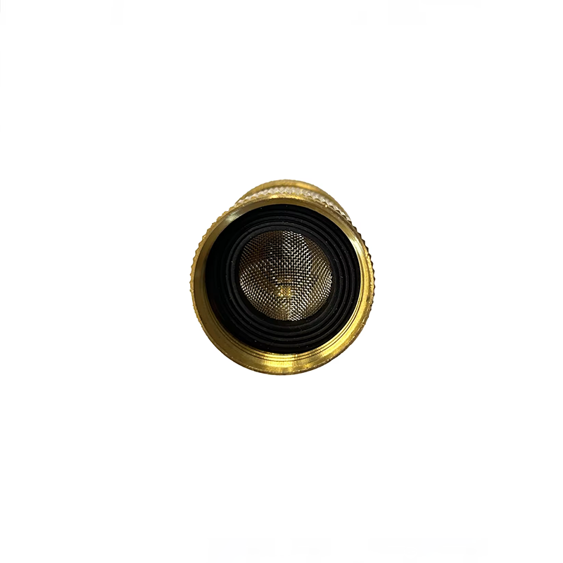 Este produto é um conector de entrada de lavadora de pressão, adequado para mangueira de jardim de 1/2, diâmetro interno de 12 mm, diâmetro externo de 16 mm, e a outra extremidade é rosca G3/4 Fem Ale, com diâmetro de 24,6 mm, possui malha de filtro interna.
