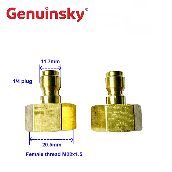 Este produto é um plugue rápido de 1/4 de polegada feminina M22 Connector.ningbo Genuinsky Company é uma empresa especializada na produção de acessórios de limpeza. A empresa integra fabricação, desenvolvimento e vendas, com excelente qualidade e preço preferencial. Por favor, tenha certeza de comprar.