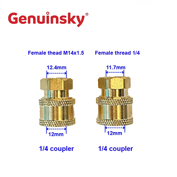 Esse próprio acoplador de liberação rápida de dois toques é feita de latão, que tem a vantagem da resistência à corrosão, que pode garantir a durabilidade e a estabilidade do próprio produto. Outra característica muito importante é que esse conector possui um design de toque duplo, que pode tornar a conexão rápida e conveniente, melhorando bastante a eficiência do trabalho e economizando o tempo do operador. O principal uso deste conector é lavar carros. Pode ser usado em cenas domésticas ou cenas comerciais de lavagem de carros. A frequência de lavagem de carros domésticos não é tão alta, mas o material resistente à corrosão de dois touchs rápidos Coupler também pode suportar o teste do tempo, sem uso de substituição frequente para fazer com que os usuários se sintam mais à vontade. Nos cenários de uso comercial, um grande número de carros precisa ser limpo, o que destaca as vantagens desse conector. O conector pode ser substituído rapidamente e mais veículos podem ser limpos dentro de um certo período de tempo, o que é de grande ajuda para os negócios comerciais.